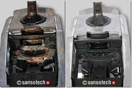 • Bei einigen Verschmutzungen bewirkt sie ein Aufweichen bis Schmelzen. Ähnlich wie die Butter in der Pfanne wird sie fliessfähig und die Haftung nimmt ab. Dadurch verkürzt sich die Behandlungsdauer erheblich.