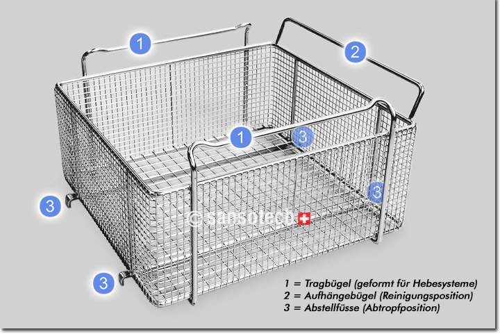 Vier Aufnahmen zum Positionieren des Korbes in der Reinigungs- bzw. Abtropfphase