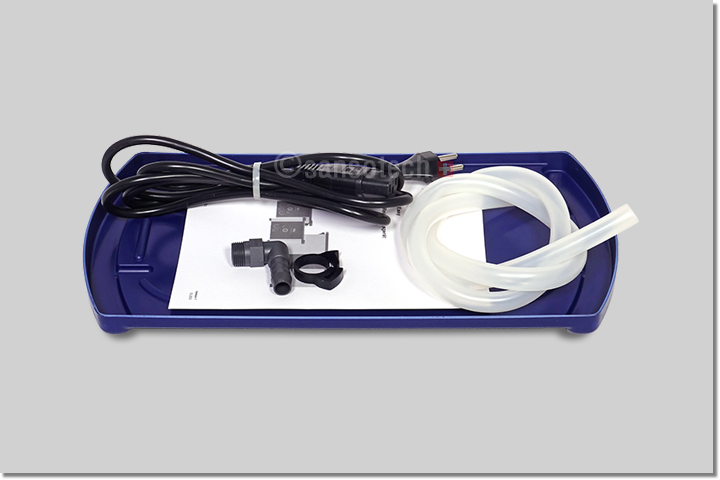 inkl. 1 Netzkabel mit CH-Stecker, 1 Schlauchtülle 90°, 1 m Silikon-Schlauch und 1 Bedienungsanleitung.